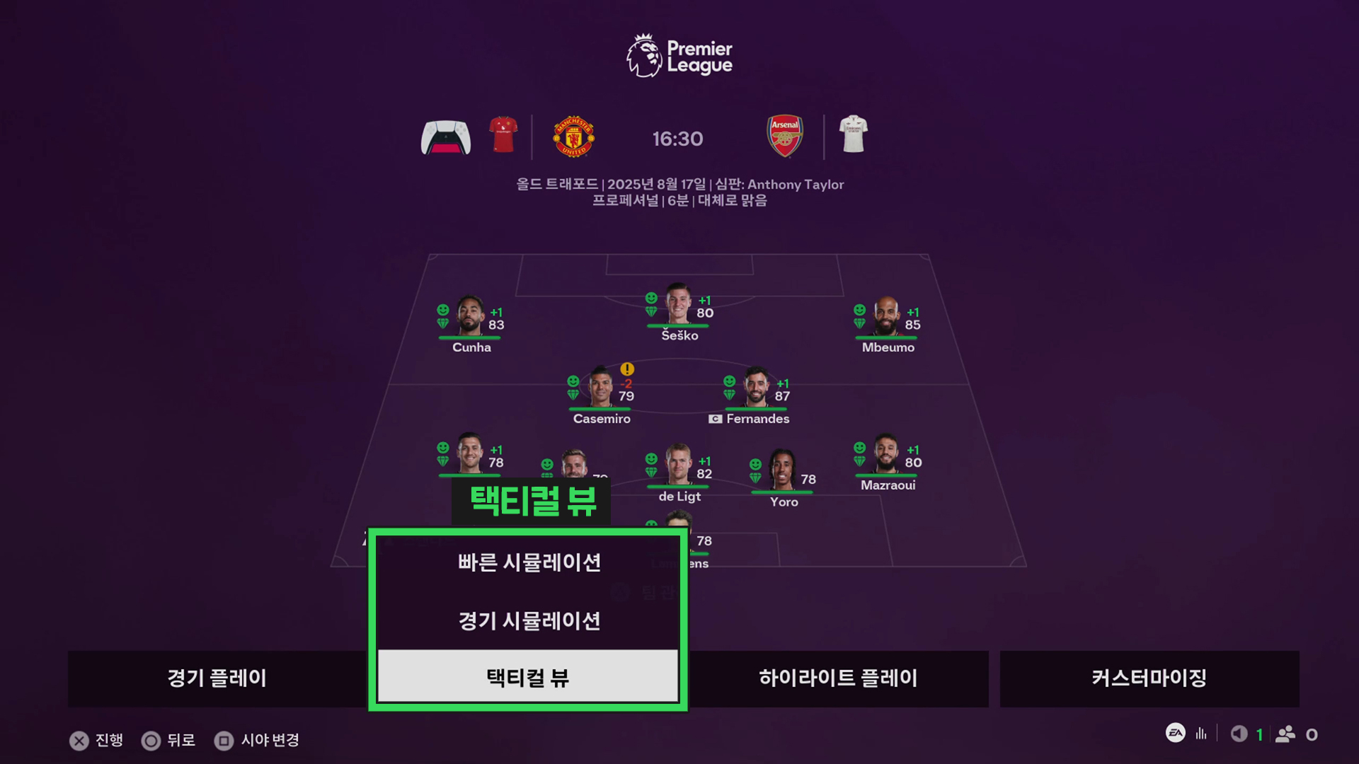 택티컬 뷰로 시작하시면 이렇게 감독 뒷모습이 보이면서